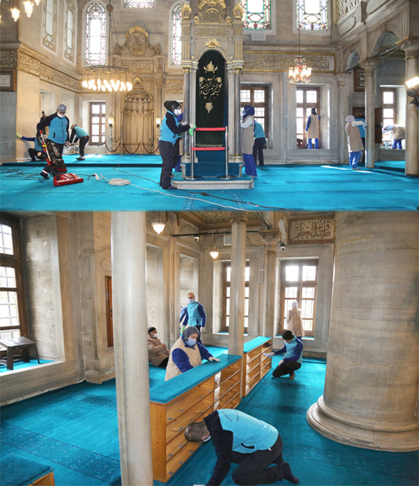 içerisi, avlusu, abdest alma yerleri Eyüpsultan Belediyesi temizlik ekipleri