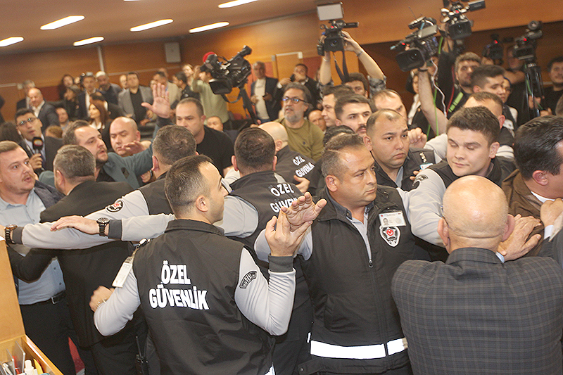 özel güvenlik ekipleri yeniden salona girdi. CHP İstanbul İl Başkanı Özgür Çelik,